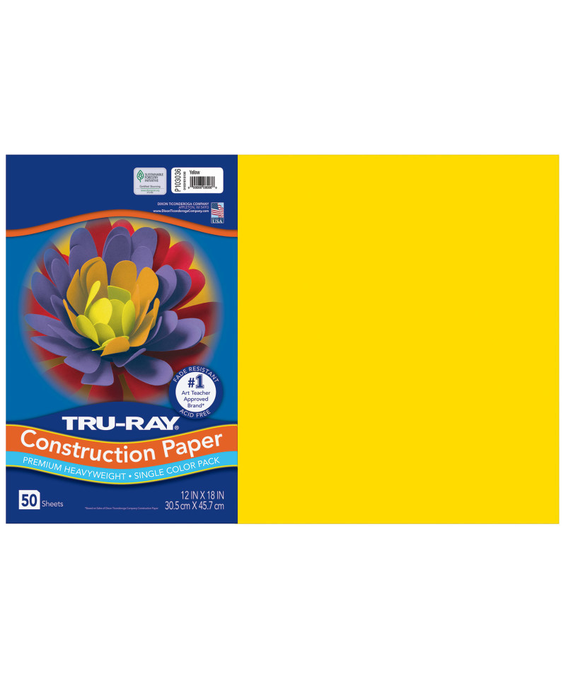 Heavyweight 100% vat-dyed sulphite with longer, stronger fibers. Tru-Ray® Construction Paper is tough enough to take scoring, folding and curling without cracking and tearing. Its superior fade-resistance keeps projects brighter and fresher longer. Available in 28 stay bright colors. Acid free for less fade. 50% recycled fiber content and recyclable. Measures 12" x 18". Each pack includes 50 sheets.
