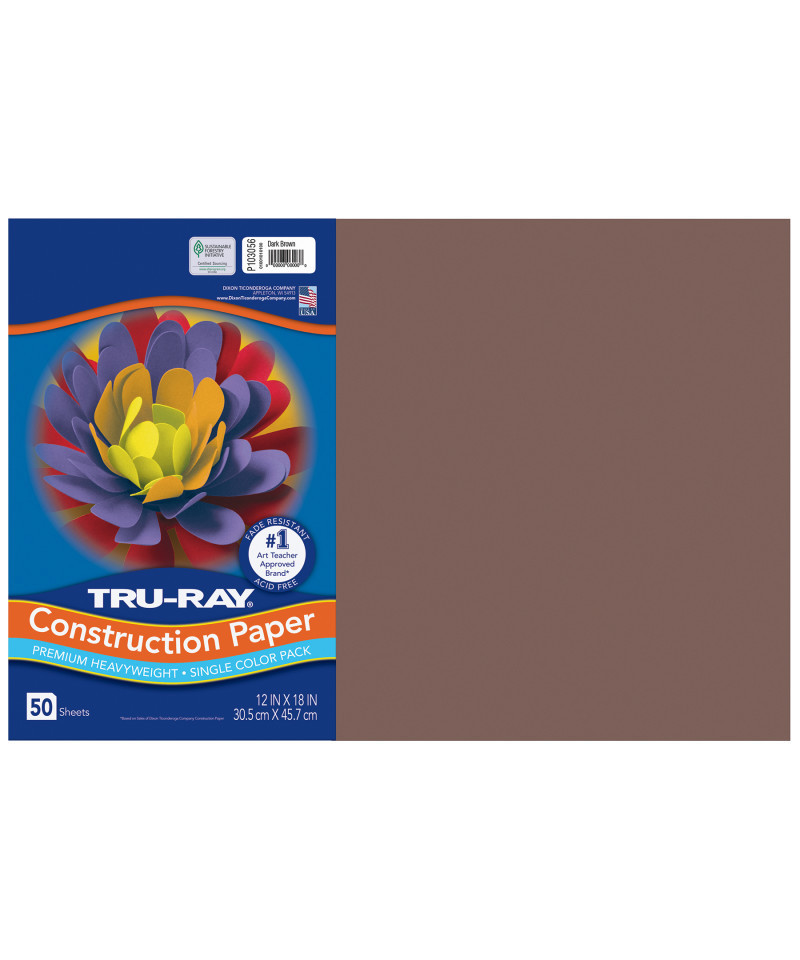 Tru-Ray® Construction Paper, Heavyweight, Dark Brown, 12" x 18", 50 Sheets