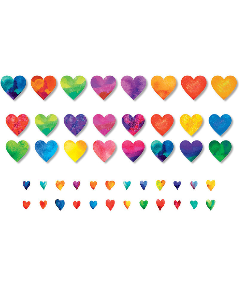 Accents liven up bulletin boards, desks, lockers, cubby spaces, or classroom centers. They can be used for tags, labels, or as student rewards. Accents are quick embellishments in crafting, card making, or art projects, and can inspire simple hands-on "maker" projects with young learners. Hole punch the hearts and they become great "swag" for the popular "brag tag" achievement necklaces. Or, simply add with your own ribbon or raffia to create a festive bunting. Hearts are sure to be "keepers" when used as lunch box love notes from parent to child, or for sending home a brief word of encouragement from teacher to student. So many possibilities! Coordinates with bulletin board set Growing Hearts & Minds. Each pack includes 48 precut paper hearts in two sizes (16 - 4" and 32 - 3.5" high), plus 48 bonus multi-colored, uncut mini hearts (1.5" and larger).