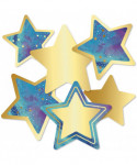 Decorate displays and play games with the Galaxy Stars Colorful Cut-Outs®. This pack includes a total of 36 cut-outs in three different sizes. This assortment includes:• 18 large stars (5 1/2"), 6 each: gold border, gold center, solid gold
