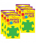 - Colorful puzzle pieces are precut and ready to use in blue, orange, purple, green, red, and yellow.
