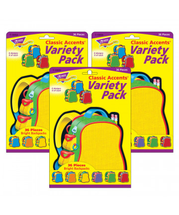 Use this decorative artwork to dress up classroom walls and doors, label bins and desks, or accent bulletin boards. Each accent measures approximately 6". Each pack contains 30 accents: 3 each of 10 designs. Sold as 3 packs for a total of 90 accents.
