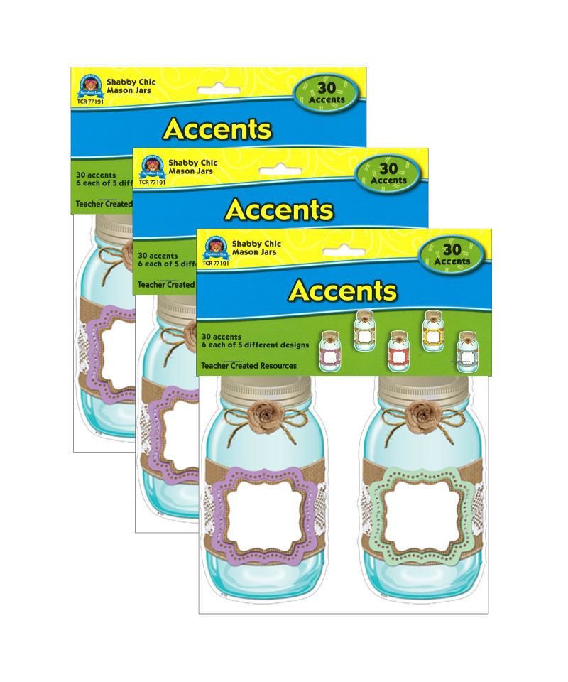 Use this decorative artwork to dress up classroom walls and doors, label bins and desks, or accent bulletin boards. Pieces measures Approximately 6". Each pack includes 30 accents: 6 each of 5 designs. Sold as 3 packs for a total of 90 accents.