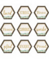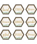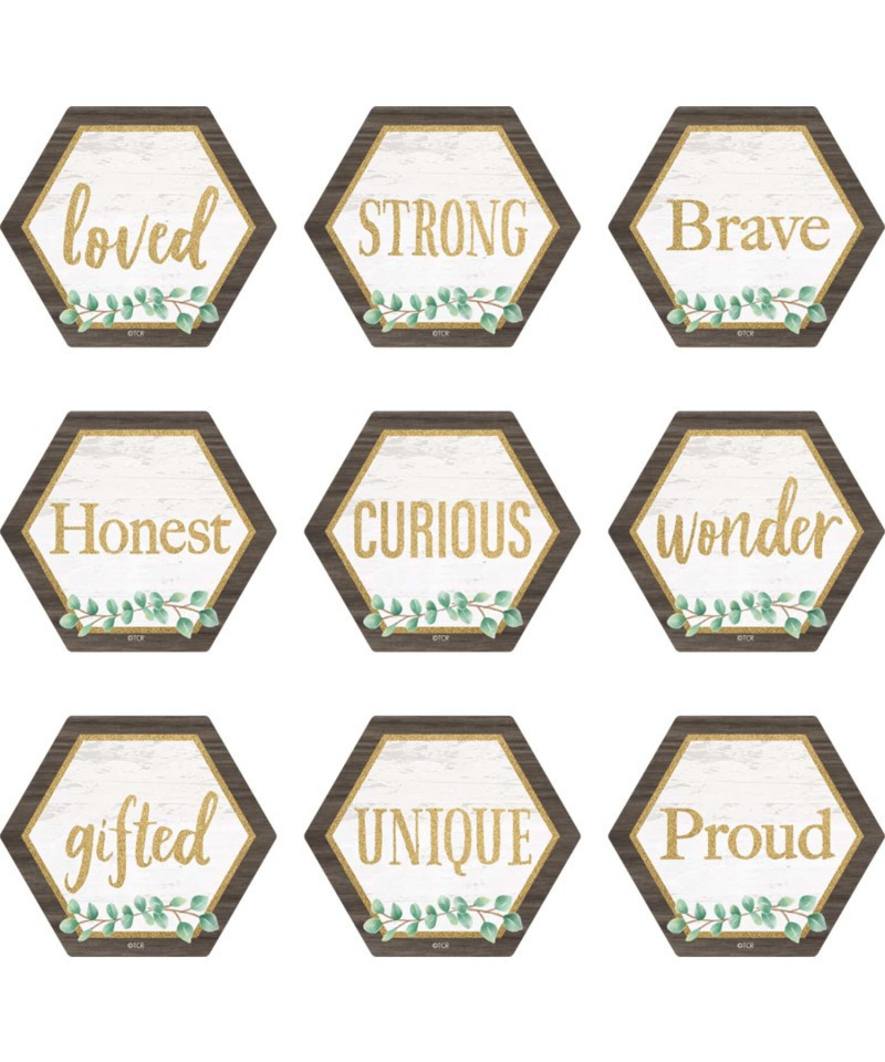 Use these soft green and wood-grain inspired accents with positive sayings in muted gold to dress up classroom walls and doors, label bins and desks, or accent bulletin boards. Each accent is about 2-5/8" x 2-5/8". Each pack includes 36 pieces.