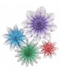 Create a colorful and unique look with these gorgeous paper flowers. Add depth and dimension to walls, backdrops, table decorations, and much more! No assembly required-opens easily and stays together with a hidden magnet. Folds back up for easy storage, so they can be used again and again. Four flowers per pack. Each pack includes one 16" light purple flower, one 11" light blue flower, one 11" mint flower, and one 8" pink flower.