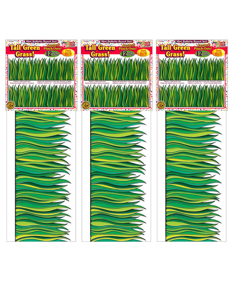 Accent Punch-Outs: Tall Green Grass! 12' Long x 8.5" High Classroom Border! Bring the feeling of sitting in the park into your classroom with this beautiful green grass border! Six full-color 24" border sections create up to a 12-foot border. Each section is 8.5" high. Perfect for your science center, or for a "get- away" reading area! Sold as 3 packs for a total of 18 border sections (36 feet).