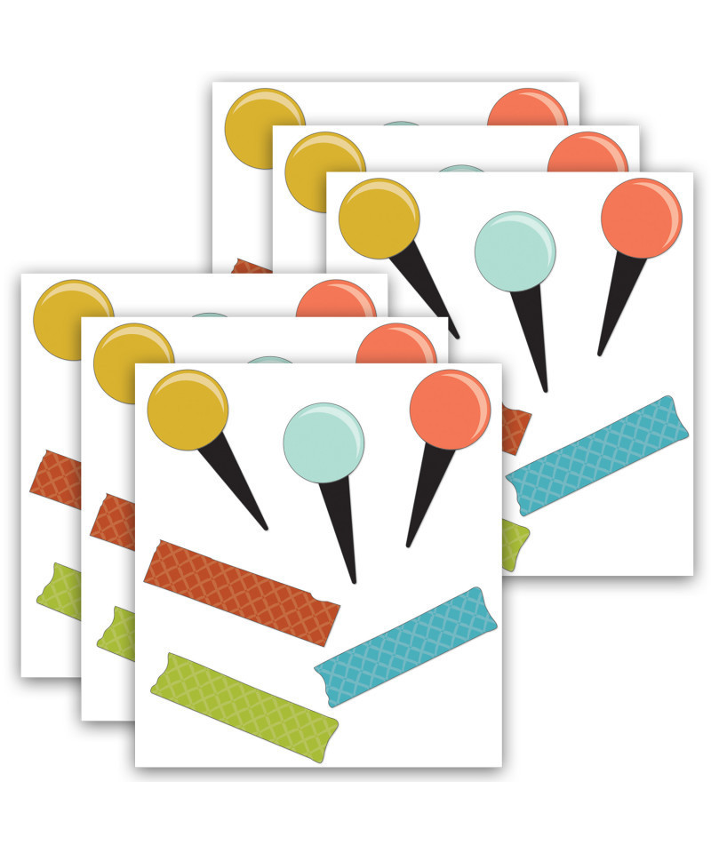 Add the perfect finishing touches to any room or display with Carson Dellosa's Let's Explore Pins & Tape Mini Tags Cut-Outs! Cut-outs are ideal for just about anything. The cut-outs range in size from about 1 1/4 inches x 3 inches to 3 inches x 3/4 inches. Printed on durable card stock, these versatile, ready-to-use cut-outs are die-cut and reusable if laminated. Cut-outs can be used as desk or cubby tags, as invitations, postcards, or flash cards, for craft projects, games, and more. Check out other Let's Explore products to create a cohesive classroom theme. Education happens everywhere, and Carson Dellosa strives to provide the tools needed to inspire learning everywhere it happens. Each 60-piece set features 28 pins and 32 pieces of tape in a variety of designs and colors. Sold as 6 packs for a total of 360 cut-outs.