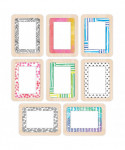 Add vibrant colors and designs to classroom décor, classroom labels, teacher supplies, and more with Carson Dellosa Creatively Inspired Name Tags Bulletin Board Cutouts. The 36-piece bulletin border decorations set includes 12 black and white name tags (3 of each 4 designs), 12 watercolor, boho rainbow tags (3 of each 4 designs), 6 polka dot name tags, and 6 green and blue striped name tags (3 each). Perfect for classroom organization, use the classroom cutouts to label classroom supplies, lockers, and cubbies, create desk name tags, daycare labels, name tag labels for back to school introductions, parent teacher conferences, and more. Made from one-sided, durable cardstock paper, each name tag measures 5.61" x 4.25" to fit comfortable as name tags for classroom field trips, or white board, cork board, bulletin board, and other room décor. The Creatively Inspired collection, designed by Stephanie and Loreal of @HappilyEverElementary, partnered with Carson Dellosa to help create a vibrant, positive, and creative environment that inspires students to learn.