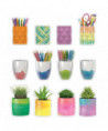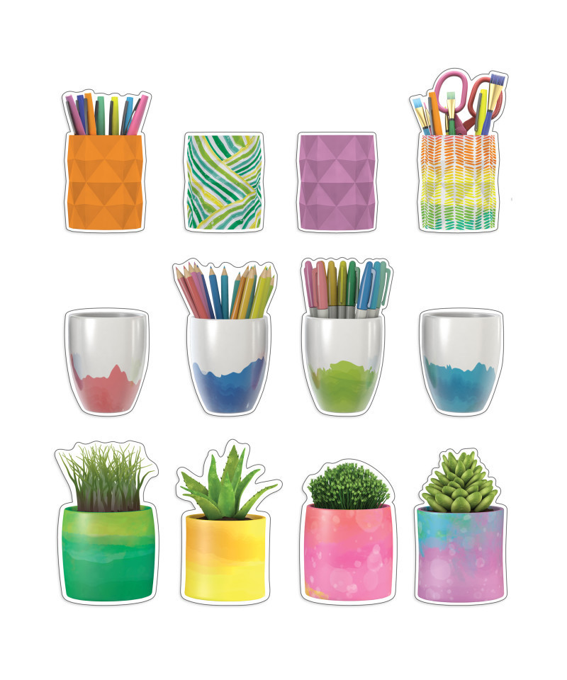 - Colorful planter and cup cut-outs are perfect for brightening walls, bulletin boards, doors, and desks