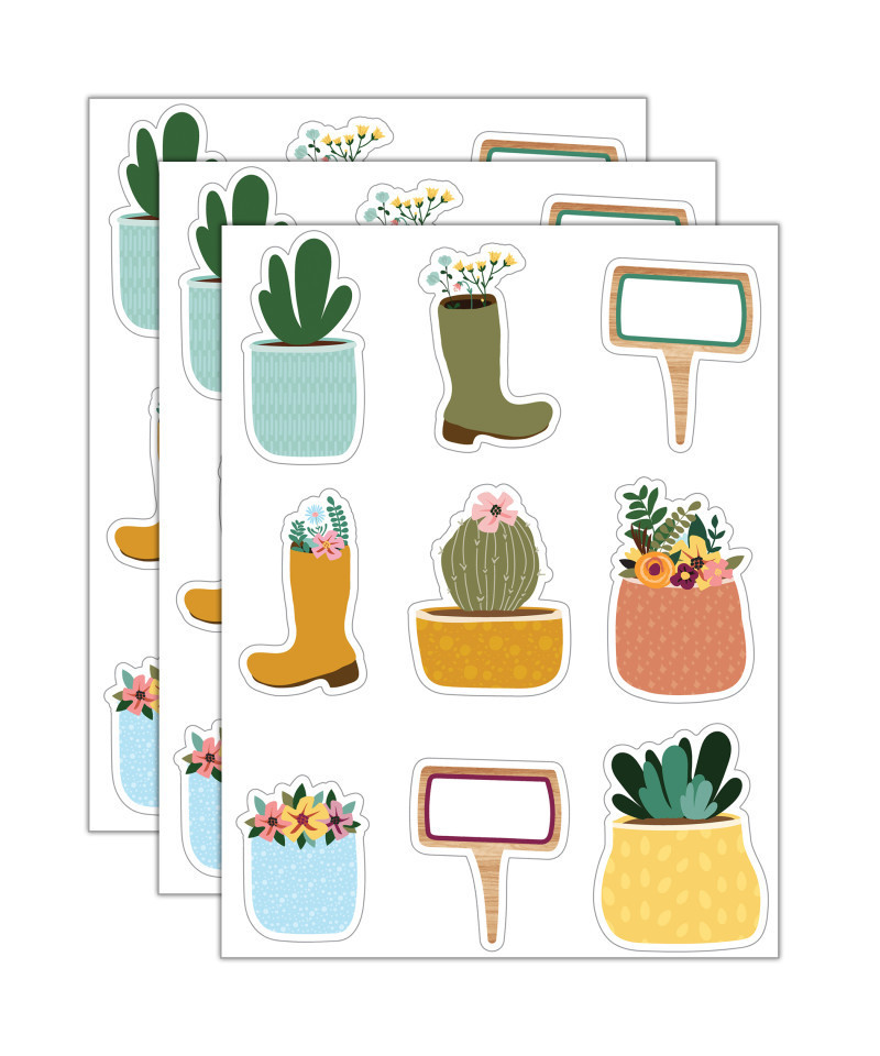 Add the perfect finishing touches to any room or display with Carson Dellosa's Grow Together Garden Bulletin Board Cutouts! Cutouts are ideal for just about anything. Each 36-pack features 9 flowerpots ranging in size from 4" x 5" to 4.35" x 6", 9 plants ranging in size from 3.2" x 6" to 5" x 6.35", 12 yellow and green boots ranging in size from 3.8" x 6 to 4" x 5, and 6 green and purple 4.8" x 5.7" garden signs—perfect for spring décor and summer bulletin board decorations. Printed on durable card stock, these versatile, ready-to-use bulletin board decorations are die-cut and reusable if laminated. With plenty of writing room, cut-outs can be used as desk or cubby tags, as invitations, postcards, flash cards, craft projects, games, and more. Check out other Grow Together products to create a cohesive classroom theme! Sold as 3 packs for a total of 108 pieces.