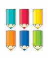 Bring a rainbow of color to the walls of your learning environment with the big, chunky pencils in the Colorful Doodle Pencils 6" Designer Cut-Outs. Use these versatile cut-outs for crafting projects, displaying artwork, making covers for mini books, making flash cards, creating small classroom signs, sending notes home to parents, and more! They also make great labels on cubbies, student folders, supply bins, and binders. Each pack includes 72 cut-outs, 12 each of 6 designs.