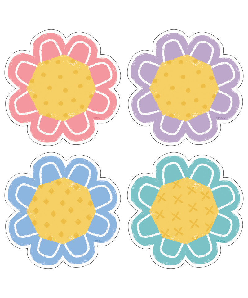Inspired by nature, calming colors and whimsical designs bring focus to classrooms and fun to crafts. Label containers, lockers and centers, accent displays, decorate walls and posters, showcase student work, inspire creative writing, and reward accomplishments. Endless possibilities! Flowers have big, bright centers to easily read names or messages. 6 color patterns, 6 of each, about 6" tall. 36 durable pieces in the package.