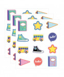 Add some style to back to school classroom labels and classroom décor with Carson Dellosa's We Stick Together Hello School Cutouts! Each bulletin board cutouts pack features 6 notebooks, 6 school bus, 6 pennants, 6 sneakers, 6 speech bubbles, and 6 star classroom cutouts for bulletin board displays, arts and crafts, student name tags, and so much more. Sold as 3 packs for a total of 108 cutouts.