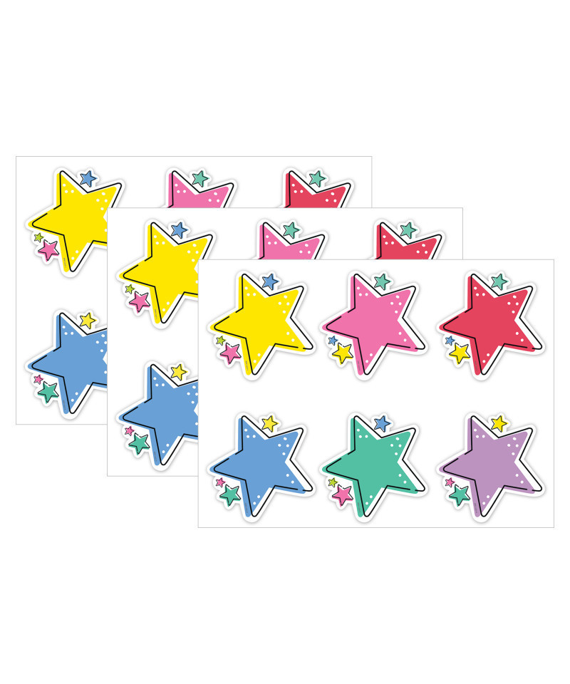 Brighten any room with the colorful Stars 6" Designer Cut-Outs. Coming in yellow, pink, red, blue, green, and purple designs, these cut-outs are the perfect accent for class messages, writing assignments, learning center activities, bulletin boards, and more! Use them to give special recognition for a job well done or to write a positive note to a student or parent. The cut-outs can also be used to make quick and easy labels on cubbies, student folders, supply bins, and binders. Cut-Outs measure each approximately 5.625"w x 5.375"h. Each pack includes 36 pieces: 6 each of 6 designs: Yellow, Pink, Red, Blue, Green, and Purple. Coordinates with Star Bright products. Sold as 3 packs for a total of 108 cut-outs.