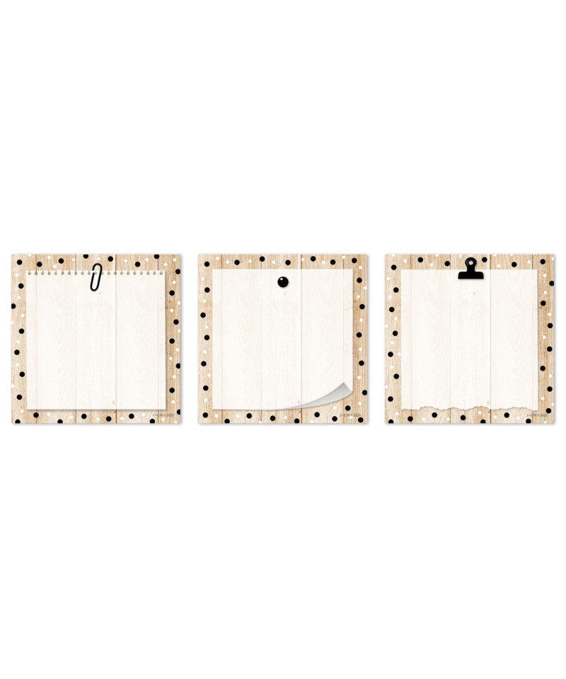 - CHARMING DESIGN – The 3" cut-out designs in this pack resemble paper notes attached to a polka-dotted woodgrain background.