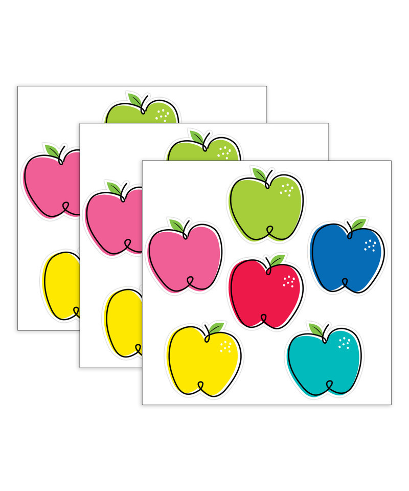 Add a cheerful touch to your classroom or home with these vibrant Doodle Apples 6" Designer Cut-Outs. Featuring whimsical designs and bright colors, these versatile cut-outs are ideal for a variety of creative uses. Whether decorating bulletin boards, crafting projects, or adding seasonal flair, these apples are perfect for enhancing any space. Use them as game pieces, invitations, memory cards, or labels for doors and cubbies. Each pack includes 36 pieces, with six each of six unique designs, offering plenty of possibilities to brighten your environment. Sold as 3 packs for a total of 108 cut-outs.