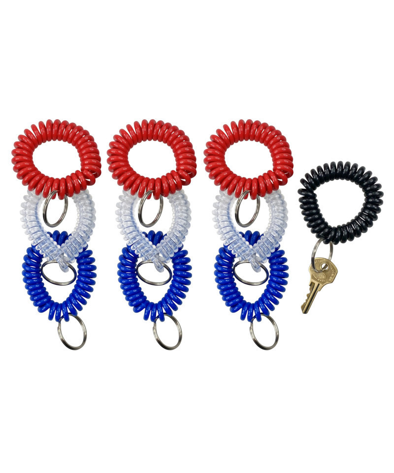 Tired of searching for lost keys? Never lose them again with baumgartens key ring wrist coil. Brilliant colors make this key chain easy to keep up with. The flexible plastic coil, with split ring attached, allows you to wear it easily around your wrist during your morning run or swim, or when your hands are full. It gives you easy access to your keys, which makes it a smart choice for any occasion. Sold as a pack of 10 wrist coils in assorted colors (no color choice).