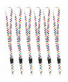 Keep your ID handy with these stylish and durable lanyards. These lanyards feature a strong plastic clip for easy removal as well as a metal ring and metal swivel clasp to securely hold your keys, ID badge, or anything you want to have close by. The soft fabric is comfortable to wear and comes in a variety of fun styles. Measures 21-3/4" long x 3/4" wide. Pack of 6 lanyards.