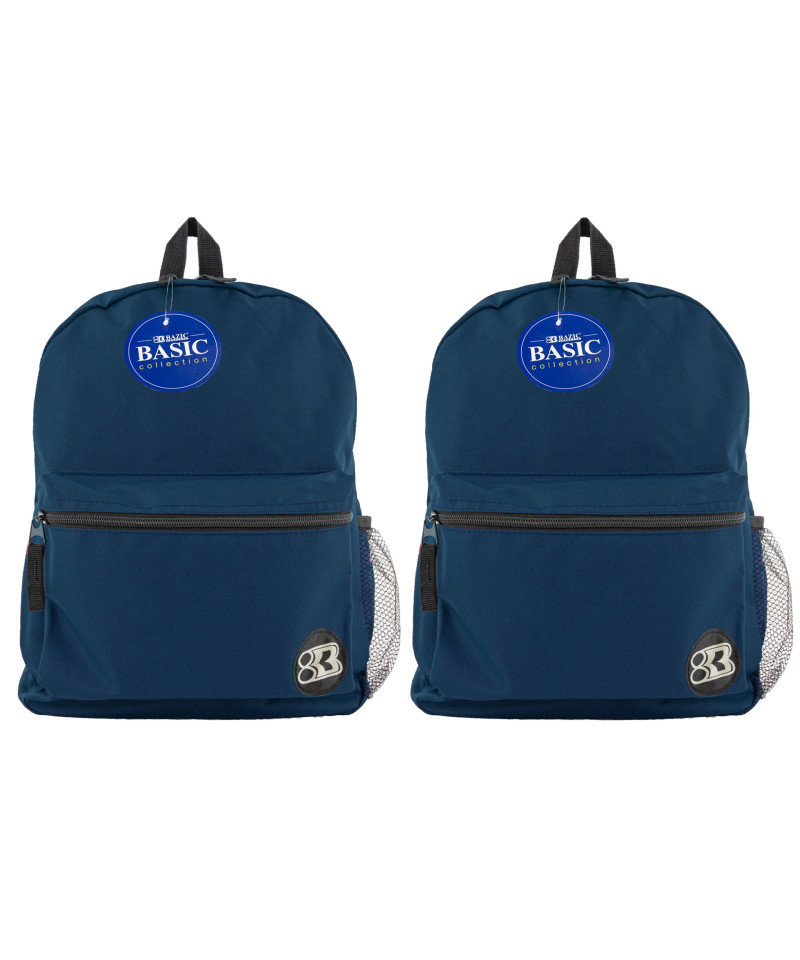 Bag measurements when expanded are 16" x 10.5" x 5". Easily carry books, binders, laptop, tablet, phone, cosmetic, keys, travel accessories, clothes, cable. Unisex: Suitable for both Men and Women. Features one large main compartment with double zipper closure, one small front compartment, one top carrying handle and one side mesh pocket fits water bottle or compact umbrella. Soft ventilated padding gives you maximum back support. Breathable and adjustable shoulder straps relieve strain on your shoulders. Light and efficient! Made of water-resistant 600 D polyester fabric. Ensure secure & long-lasting usage. Great backpacks for college, elementary, middle, high school students, boys, girls, teens. Sold as a pack of 2 backpacks.