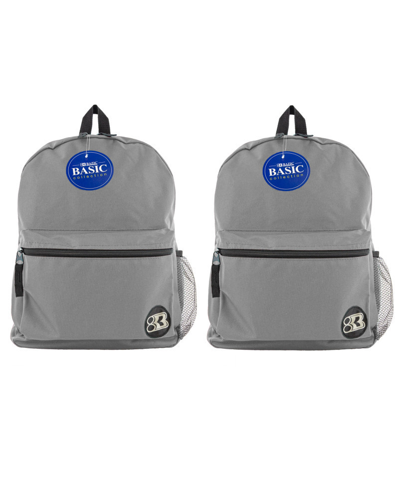 BAZIC Products® 16" Basic Backpack, Gray, Pack of 2