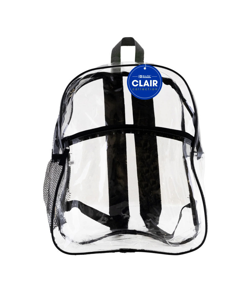 This is a clear plastic backpack with dimensions of 15" x 12" x 4" when expanded. Great for stadium visits and see-through for safety. Padded adjustable shoulder straps for comfort. Easily carry books, binders, laptops, tablets, travel accessories, clothes, and cables. Unisex: Suitable for both Men and Women. Zipper closure. Features 1 large main compartment, 1 medium front compartment, 1 top carrying handle, and 1 side mesh pocket fits a water bottle or compact umbrella. Made of waterproof and strong 0.25mm PVC plastic. Ensure secure & long-lasting usage. Feature zipper with pulley for opening and closing the bag easily. Cute stylish backpacks for college and high school students. See-through and quickly see what you want, no need to rummage. From TSA to stadium security guards, pass through inspection checkpoints with ease. Breathable and adjustable shoulder straps relieve the stress on the shoulder. Light and efficient! Perfect gift for your family, friends, boys, and girls!