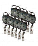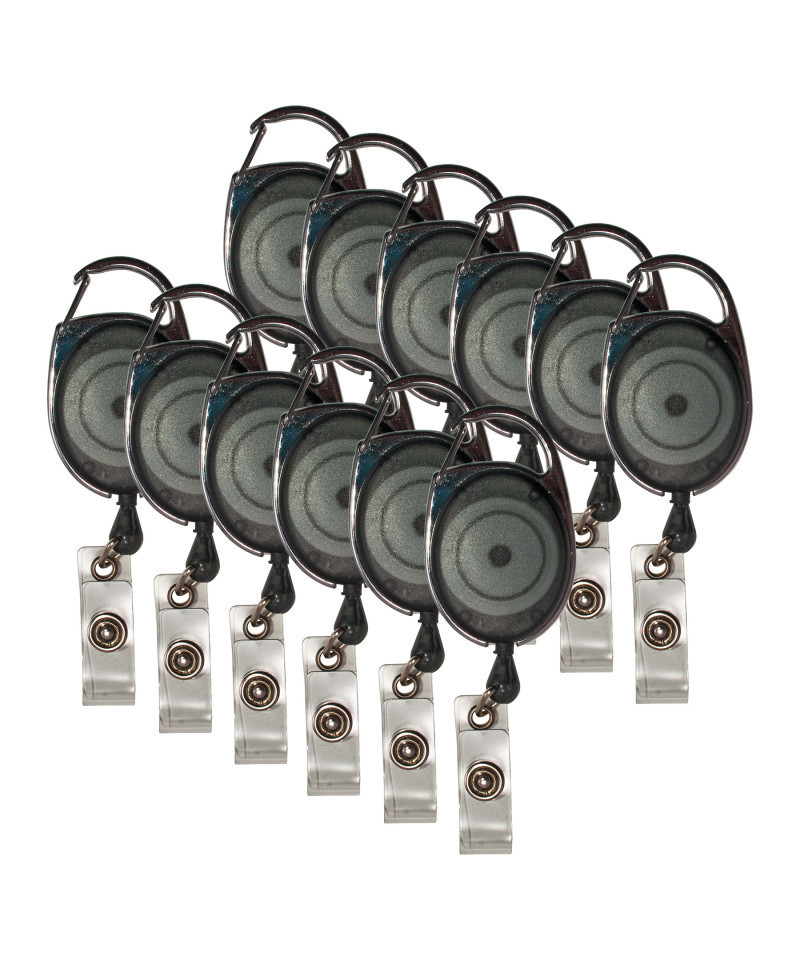 Carabiner-style clip offers a more secure connection and frees you from wearing an ID badge. Carabiner can hook onto belt loops, briefcases and purse straps. Retractable cord allows mobility for convenient scanning/swiping. Each pack includes 12 badge reels with badge strap.