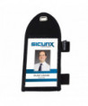 Display your ID card, visitors pass or security authorization with quality, convenience and style in mind. This vertical neck pouch features a grommet hang hole, a clear window so your ID card can be clearly seen and double pen loops to attach a pen. This versatile pouch has a top loading pocket to stash business cards and a Velcro rear pocket for securing cash and valuables. The pouch will hold any ID card up to 2.25" x 3.5". Sold as 1 black pouch.