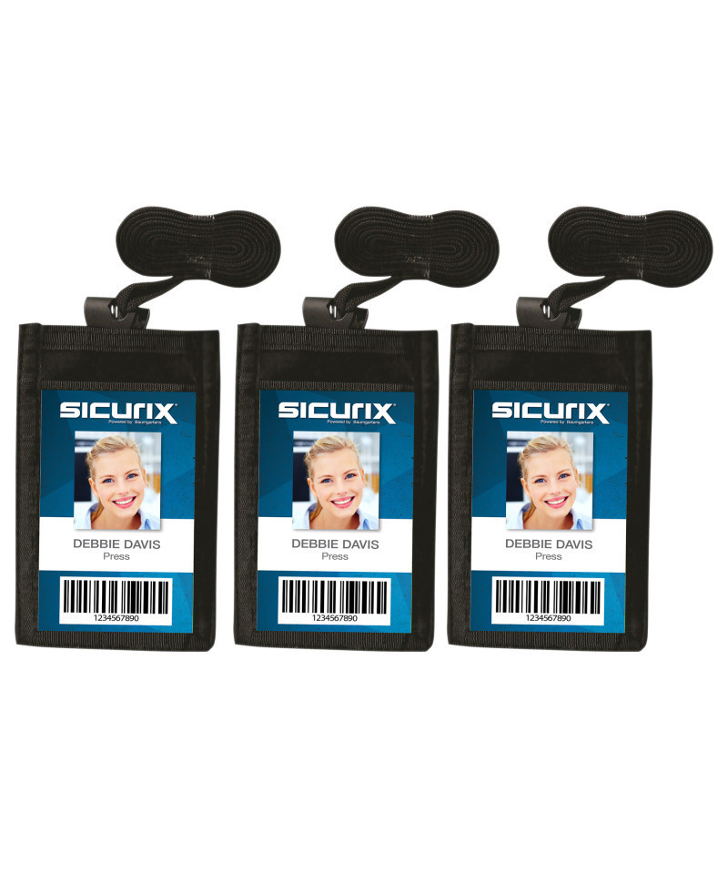 When you want to display your ID card, visitors pass or security authorization with safety and style in mind, SICURIX card holder fits the bill. This vertical neck pouch features an adjustable neck cord, a clear window so your ID card can be clearly seen and a tab to attach a pen. This versatile pouch has a top loading pocket to stash business cards and a zippered rear pocket for securing cash and valuables. It has a comfortable neck cord that is 42 inches long. The pouch will hold any ID card up to 4" x 2 1/4". Sold as a pack of 3 pouches.