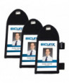 Display your ID card, visitors pass or security authorization with quality, convenience and style in mind. This vertical neck pouch features a grommet hang hole, a clear window so your ID card can be clearly seen and double pen loops to attach a pen. This versatile pouch has a top loading pocket to stash business cards and a Velcro rear pocket for securing cash and valuables. The pouch will hold any ID card up to 2.25" x 3.5". Sold as a pack of 3 black pouches.