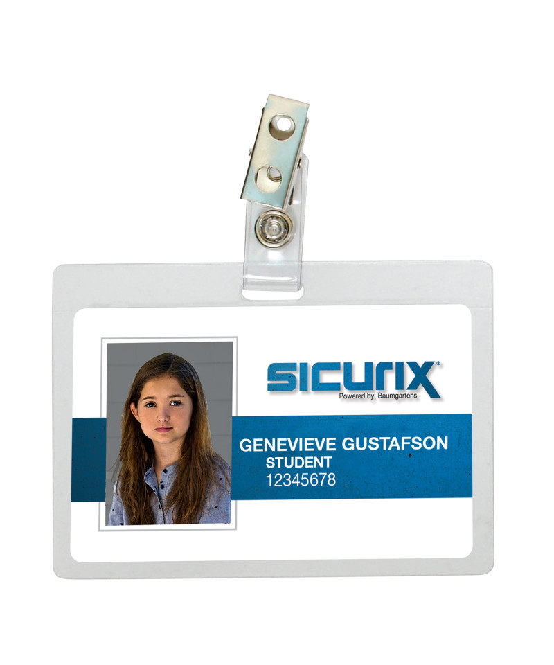 If you work in the health profession, you are security or personnel that requires identification or security authorization, an ID card holder is an essential item for you. Easily attach your ID card or badge to your person for easy identification and seal your ID badge, visitors' pass or security card in for extra security with SICURIX Self-Laminating Badge Holder. The badge holder is pre-punched and includes clip to easily attach to card reels, lanyards, chains or barbs. The horizontal badge holder will hold cards up to 3 1/2" x 2 1/4". Each pack includes 25 horizontal badge holders.