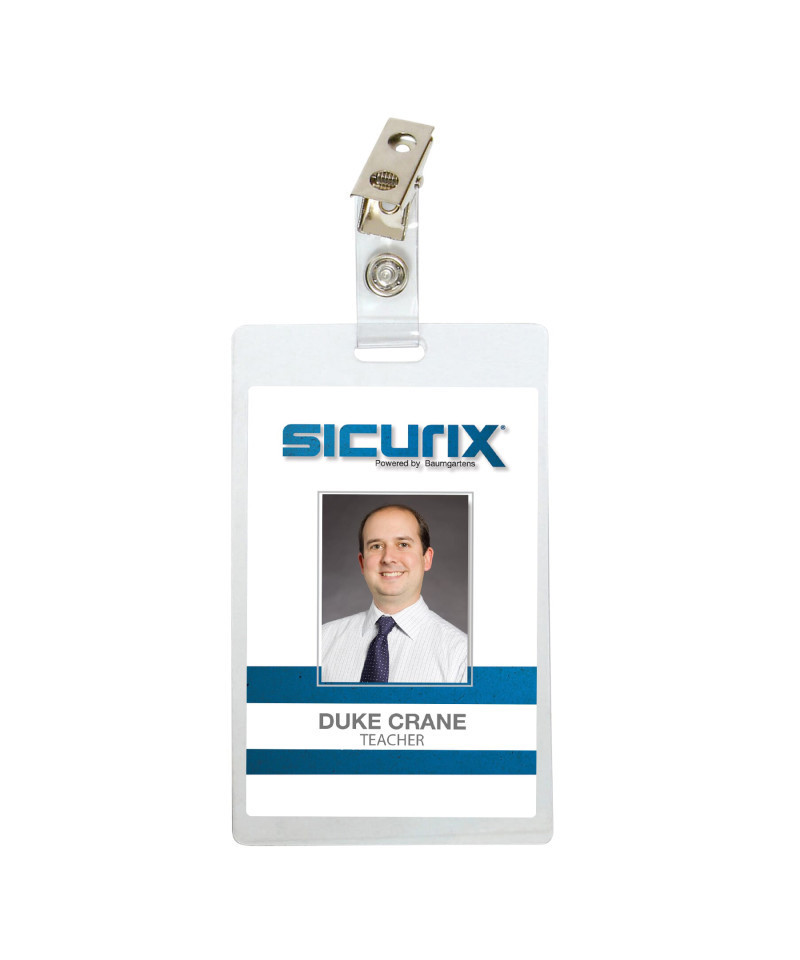 If you work in the health profession, you are security or personnel that requires identification or security authorization, an ID card holder is an essential item for you. Easily attach your ID card or badge to your person for easy identification and seal your ID badge, visitors' pass or security card in for extra security with SICURIX Self-Laminating Badge Holder. The badge holder is pre-punched and includes clip to easily attach to card reels, lanyards, chains or barbs. The vertical badge holder will hold cards up to 3 1/2" x 2 1/4". Each pack includes 25 vertical badge holders.