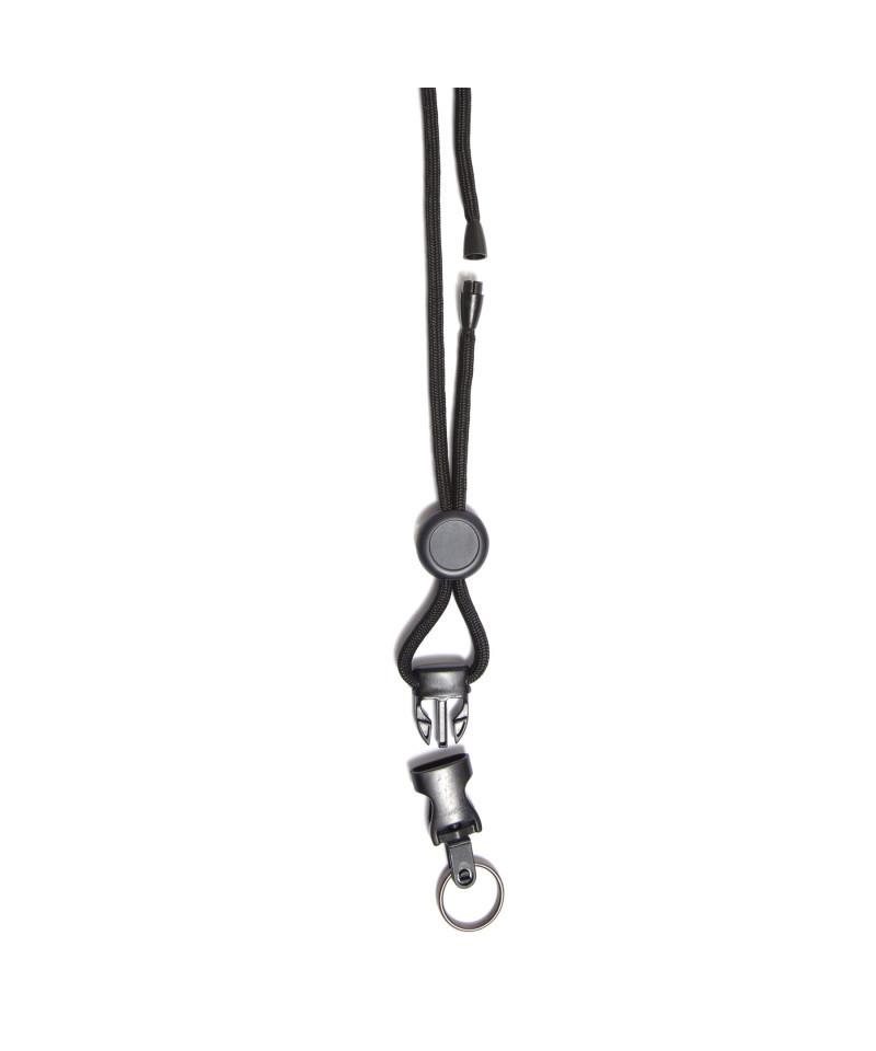 Tough breakaway lanyards offer an added degree of safety since they separate if snagged, pulled or caught. Versatile design works for a wide range of uses. 1/4" round breakaway lanyard features a round bolo-style slider for easy adjustment. Metal split ring swivels freely and detaches for quick, easy access. The slider and detachment mechanism is made of plastic. Lanyard is made of nylon. Each Detachable Breakaway Lanyard is 36" long. Each pack includes 12 lanyards.