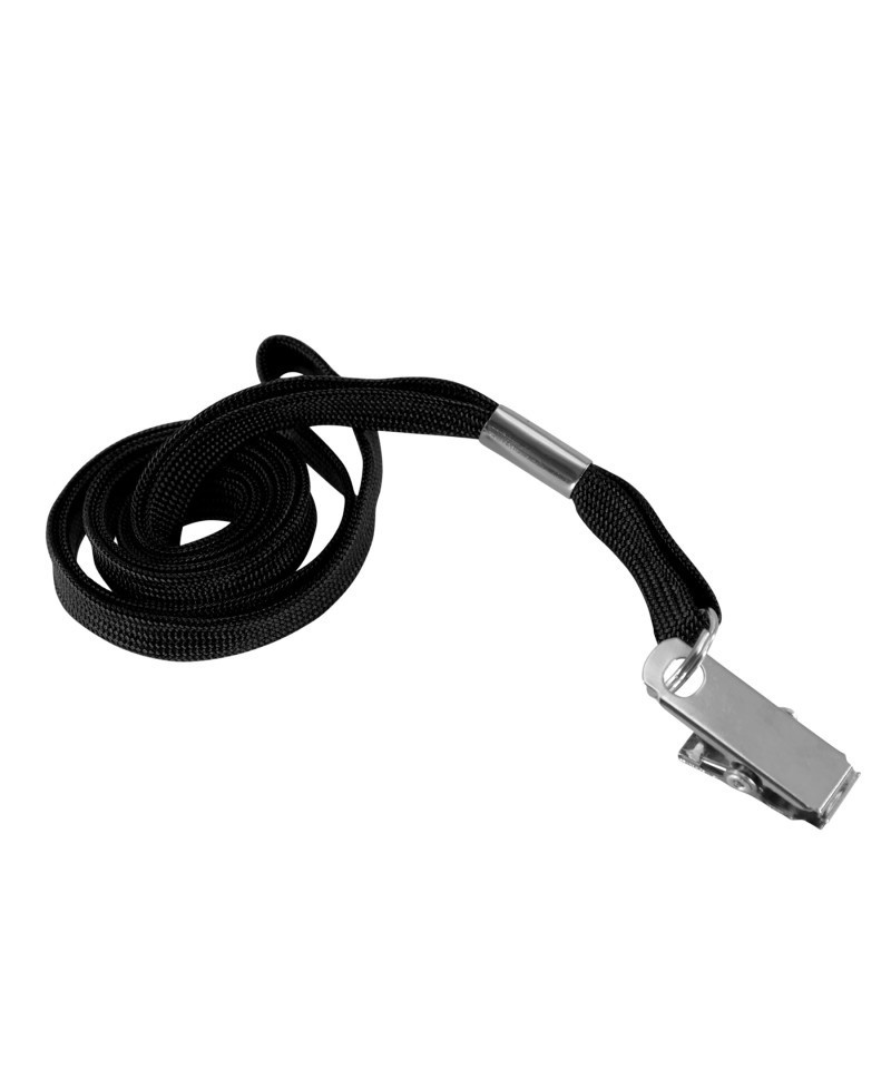 This flat-braided lanyard is perfect for securing your ID badge. Convenient, flat metal clip instantly attaches to an item for fast setup. Flat woven style lanyard made of durable, low-friction nylon for years of use. 36" length, 3/8" wide. Each pack includes 100 lanyards.