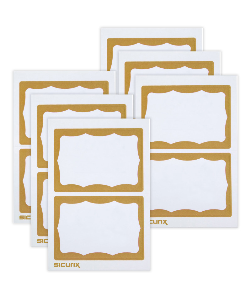 What better way to identify people at a crowded event like a conference, convention or meeting than to use color coded self-adhesive gold bordered name badges. Great for figuring out who you came with or for remembering the names of people you always seem to forget. Not for use on leather. Each pack includes 100 badges. Sold as 6 packs for a total of 600 badges.