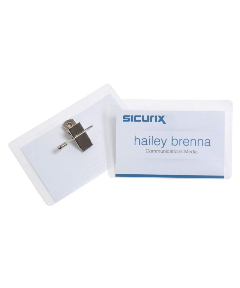 These clear reusable plastic holders are made with a clip and a pin which makes them versatile and secure. Who wants to deal with ID badges that won't stay in one place? Make your life less complicated. Instantly create impressive custom name badges using your inkjet/laser printer. 8.5" x 11" white micro perforated sheets included. Pack of 50.