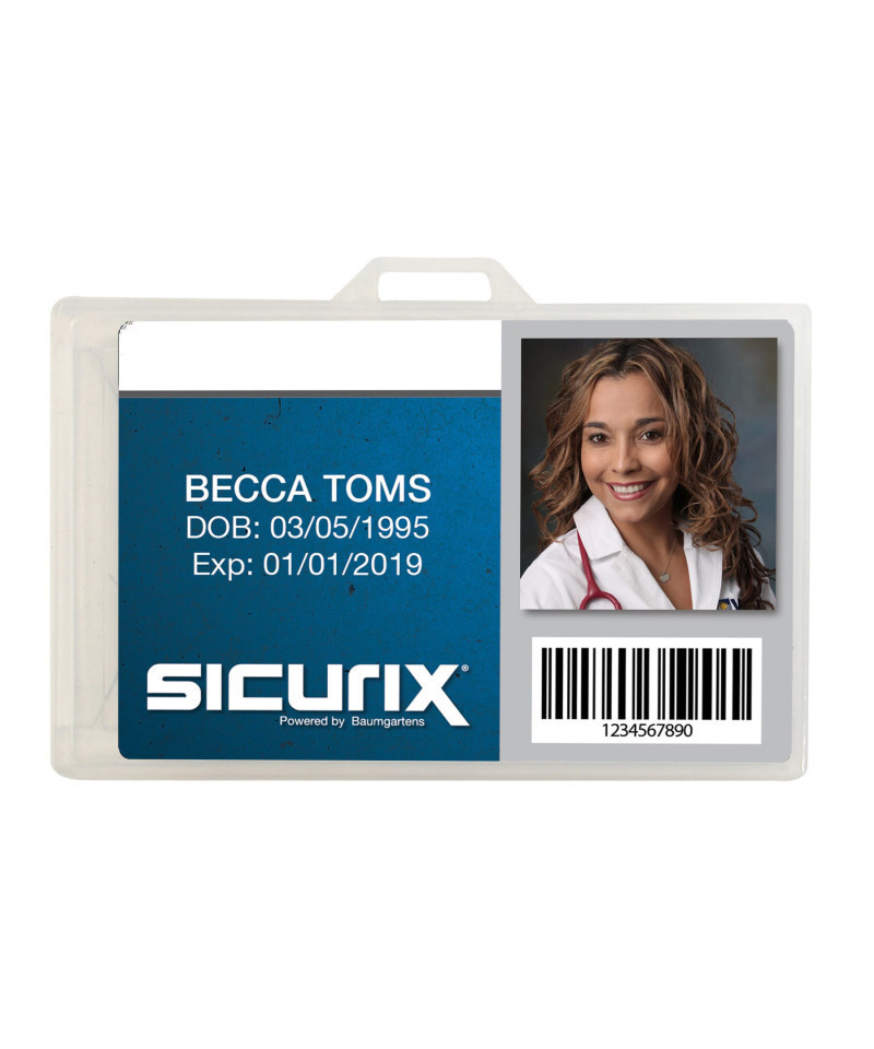 SICURIX Translucent Plastic Card Dispenser holds ID cards up to .30mil thickness, that's around 30 cards. The maximum card insert size is 2-1/8 x 3-3/8 inches. The dispenser provides protection and easy access to your ID, credit cards or business cards. Each card holder has a die cut hole in the back so it attaches easily to card reels, lanyards and chains. They are great for Mifare, mag striped and other ID cards. The notched lip gives you quick and easy access. Pack of 25 horizontal card dispensers.