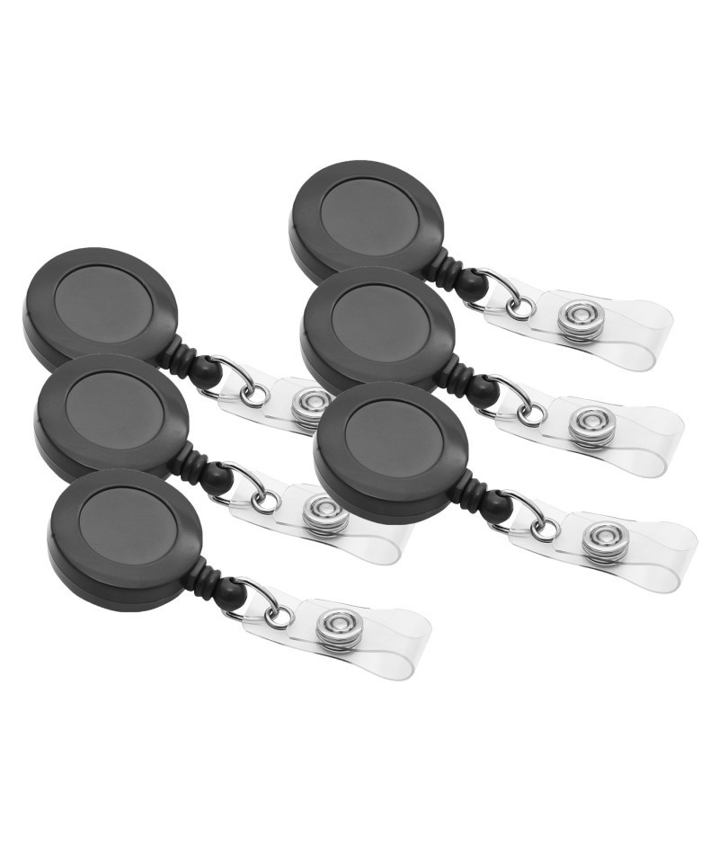 These compact, round, plastic card reels are convenient for displaying your ID or security badge. With an ID card reel, your badge or ID card stays securely on your person at all times so you can't lose it and it cannot be misused by unauthorized persons. The card reel has a conveniently placed swivel spring clip. Reel it out to show your badge to security or for easy use at the access panel. Because it's retractable you never have to take it off, which means you'll never forget where you put it. This black card reel is 30 inches and retracts automatically. Sold as a pack of 6.