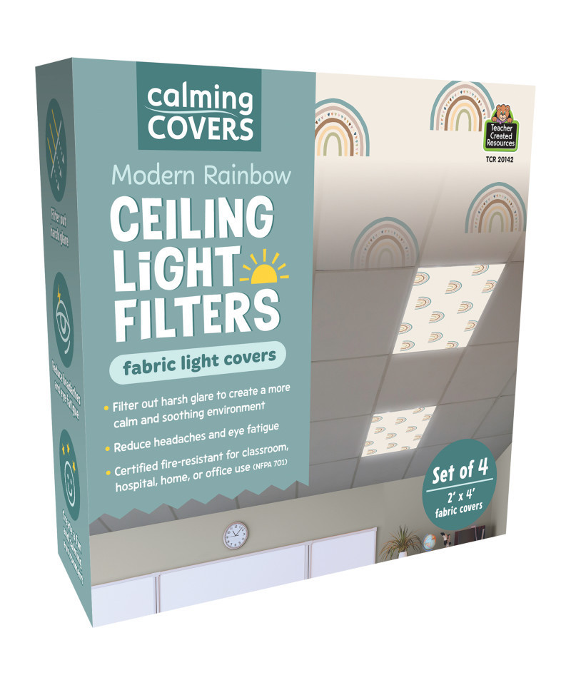 Teacher Created Resources® Calming Covers Ceiling Light Filters, 2' x 4', Modern Rainbow, Pack of 4