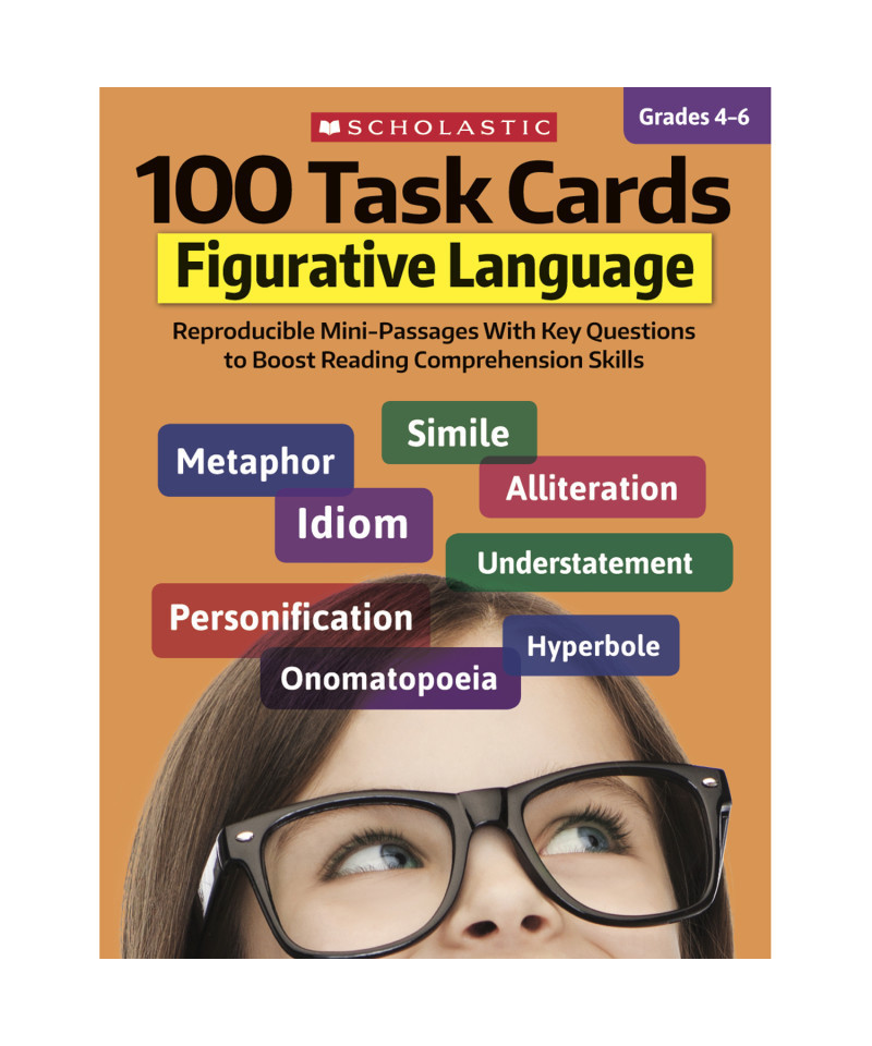 Your students’ comprehension-and writing-abilities will soar with this big collection of no-prep, task cards that teach all about figurative language! Each reproducible card contains a high-interest mini-passage and five key questions to hone must-know skills-in just ten minutes a day. Cards provide guided support to help students master idioms, metaphors, similes, personification, hyperbole, understatement, irony, alliteration, onomatopoeia, and more. Perfect for ESL students and aspiring writers!