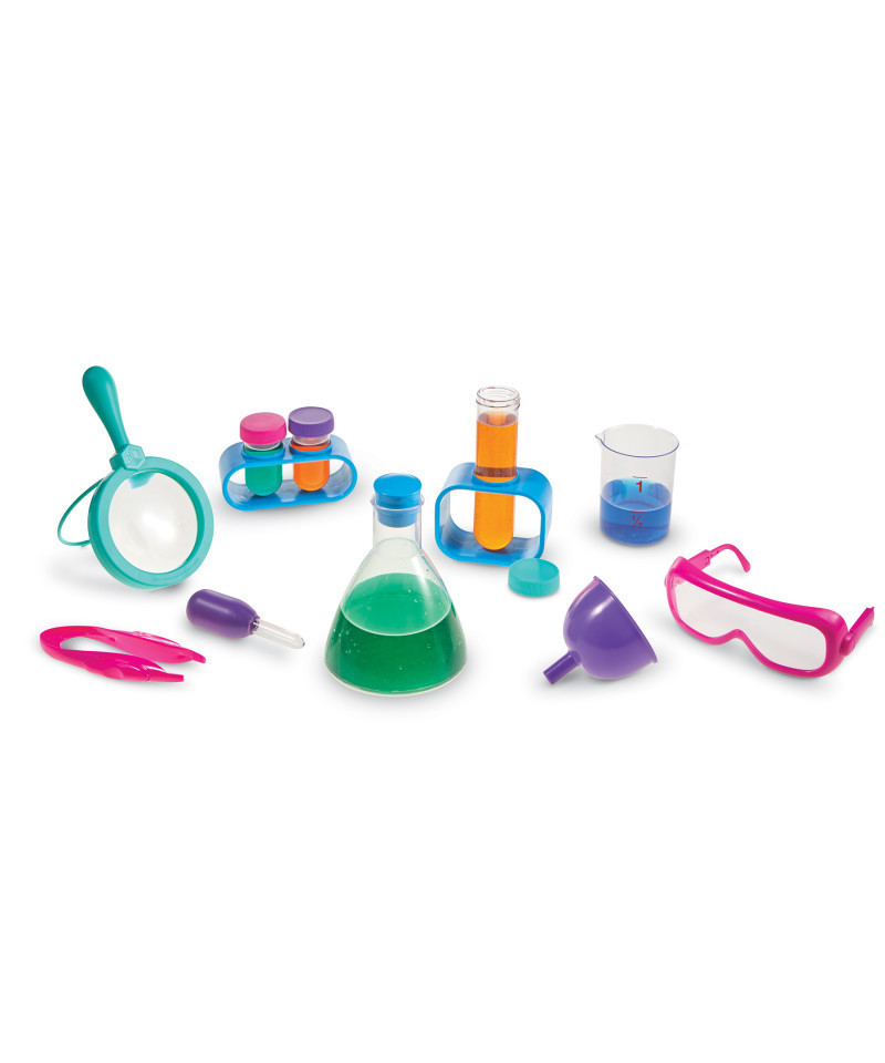 An all-new color for this bestselling Primary Science set! Perfectly sized science tools support early hands-on science investigations, while activity cards introduce science process skills, living and nonliving things, physical science, senses and more. Includes beaker, magnifying glass, funnel, eyedropper, tweezers, goggles, 10 activity cards, and more.
