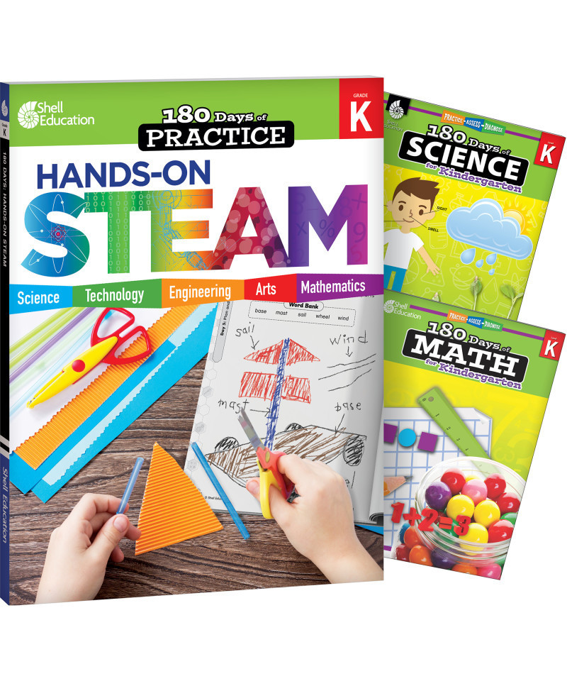 Shell Education 180 Days STEAM, Science, & Math Grade K: 3-Book Set