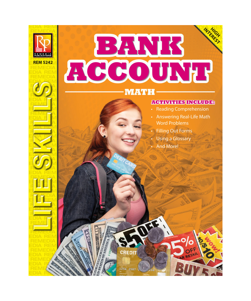Students practice applying their math skills in addition, subtraction, multiplication, division, percents, fractions, and decimals. They also gain valuable, practical knowledge about the important survival skill of handling money and using a bank account, debit card, withdrawing and depositing money, and more. This 64-page book includes a glossary and an answer key.