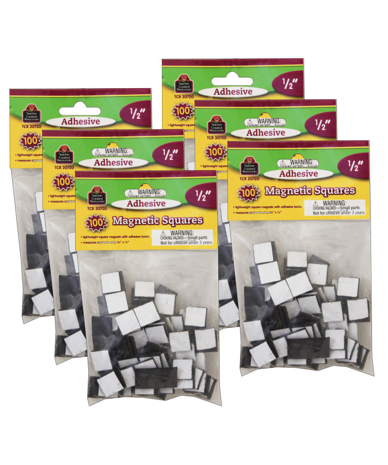Peel the adhesive side of these handy pre-cut squares and stick them to accents and cutouts, photos, calendars, and student artwork. Then, stick the magnetic side on to file cabinets, metal doors, whiteboards, or any other magnetically receptive surface. Each square measures 1/2". Each pack includes 100 squares. Sold as 6 packs for a total of 600 magnetic squares.
