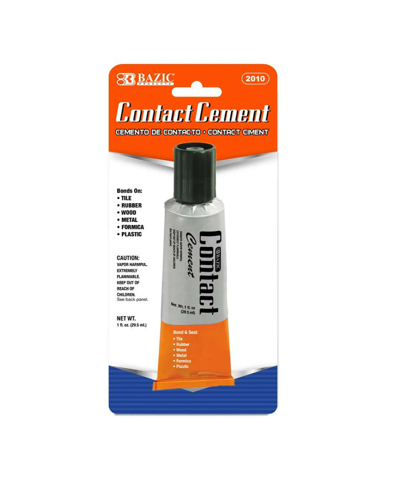 Flexible acrylic adhesive suitable for both porous and non-porous surfaces. Super strong adhesive that forms permanent bonds for a variety of applications. Latex-free. Create the perfect scrapbook with our various glue types and applicators. Great for home improvement, repairs, and craftwork. Use on dry, clean surfaces. Squeeze the tube and apply glue to both surfaces as needed. Wait about 10 minutes before mating the parts. Heavier parts may require clamping. Contact cement is ideal for bonding and sealing high-pressure laminates such as tile, rubber, wood, metal, Formica, plastic, and similar surfaces. Clean the tip and replace the cap immediately after applying glue. Prolonged exposure to light can cure the adhesive. Store in a cool, dry, dark place.