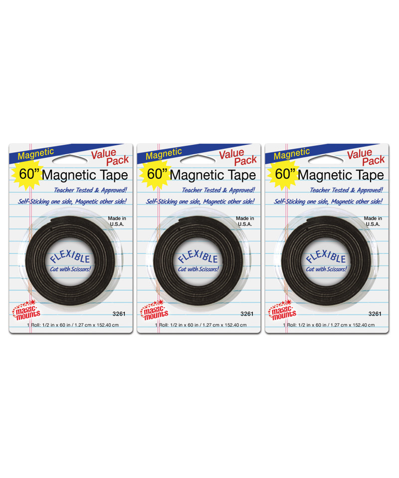 Magnetic tape is a versatile and easy-to-use solution that can be effortlessly cut with a pair of scissors, allowing you to customize the length to suit your specific needs. Unlike traditional adhesive products, it eliminates the hassle of messy glue, making application quick and clean. Once applied, this tape adheres securely to a wide range of metal surfaces, ensuring a strong hold. With magnetic tape, you can transform almost any lightweight object—such as photos, notes, or crafts—into a convenient magnetic item. This makes it an ideal choice for organizing your space, displaying items on metal surfaces, or creating DIY projects. Sold as a pack of 3 rolls.