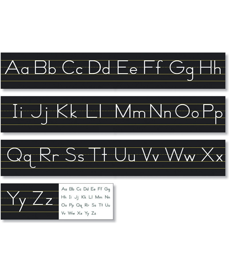Use these alphabet lines to teach the alphabet and proper letter formation. Each alphabet line measures over 14' (4.3 m) long when assembled. Seven 24-1/4'' x 7-5/8'' (61.6 x 19.4 cm) strips per package.