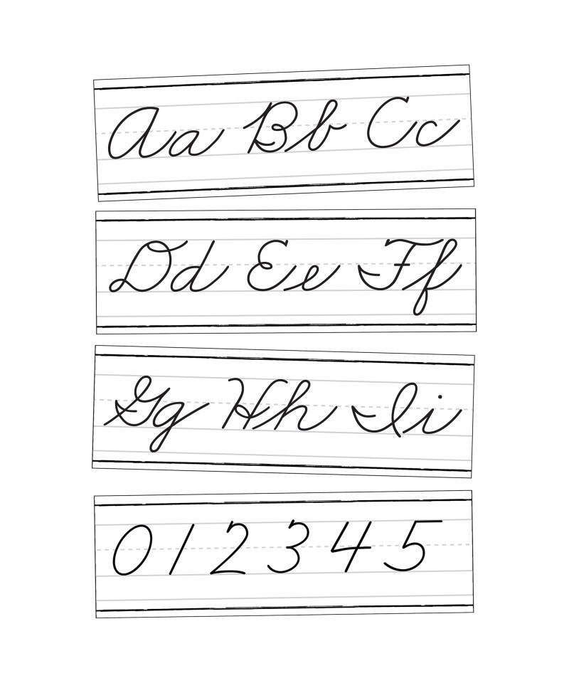 - The 39-piece farmhouse classroom set includes a 53.4" x 5.1" cursive alphabet line, 30.9" x 5.2" number line, cursive handwriting reference chart, an alphabet chart, an inspirational poster