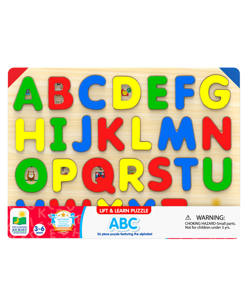 - LEARN ABOUT LETTER RECOGNITION & WORD FORMATION – The Lift & Learn ABC Puzzle teaches children how to recognize different letter shapes as well as how they are used in some simple words. Underneath each of the puzzle pieces are words and illustrations to show the letter being used, helping children understand word formation and spelling. Measures 15" long x 0.4" wide x 11" high