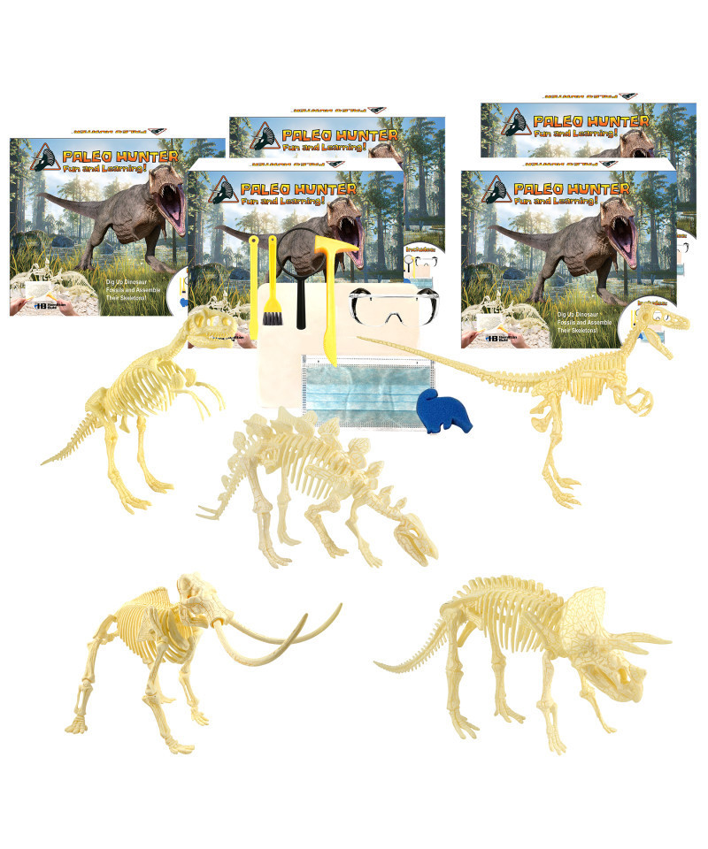 HamiltonBuhl® Paleo Hunter™ Dig Kit for STEAM Education - All Five Dinosaurs – Stegosaurus, Velociraptor Rex, Mammoth, Triceratops Rex and Tyrannosaurus Rex Spark a curiosity for science and paleontology inspiring them to pursue a path toward discovery. HamiltonBuhl's Paleo Hunter™ Dig Kit is an awe-inspiring project for kids ages 6+. Paleo Hunter™ Dig Kit is a perfect project for any child curious about the world around them. Exciting, educational and fun!