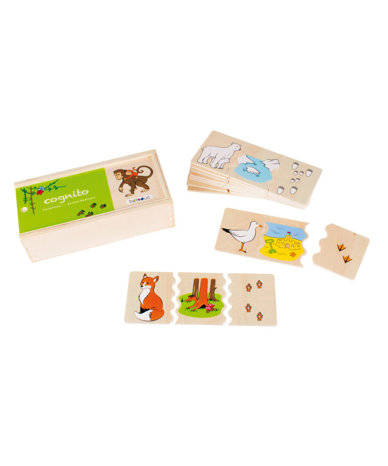 Explore the fascinating world of animals with the Cognito Animal Habitats Puzzle! This educational game helps children develop logical thinking by matching animals with their habitats and tracks. It also promotes motor skills and problem-solving abilities, as only the correct parts can be assembled together. The puzzle comes in a sturdy wooden storage box, making it easy to keep all the pieces organized and in one place. Perfect for solo play, this puzzle is a great way for kids to have fun while learning about different animals and their environments.